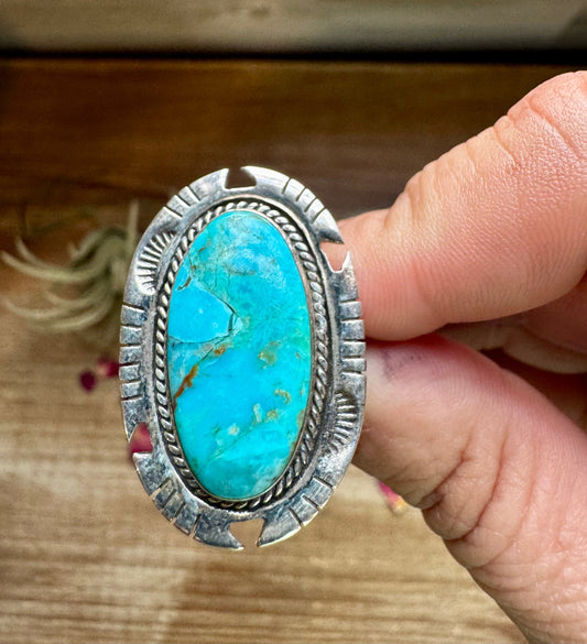 Oval Ring- Size 8- Kingman turquoise ring and sterling silver