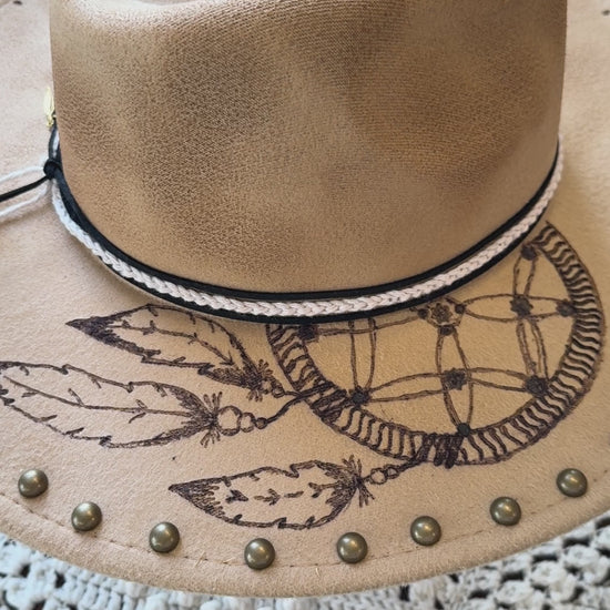 Catch your dreams in style with our Dreamcatcher Custom Boho Hat! This beautifully designed hat embraces the bohemian spirit with its intricate dreamcatcher design. Keep the sun off your face while adding a unique touch to any outfit. Perfect for any free-spirited individual.