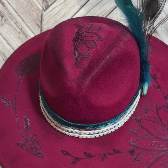 Add a pop of personality to your wardrobe with our Turquoise Peacock & Boho Custom Felt Hat. Perfect for any occasion, this unique accessory is sure to turn heads. Stand out from the crowd and embrace your individuality with this playful and stylish hat.